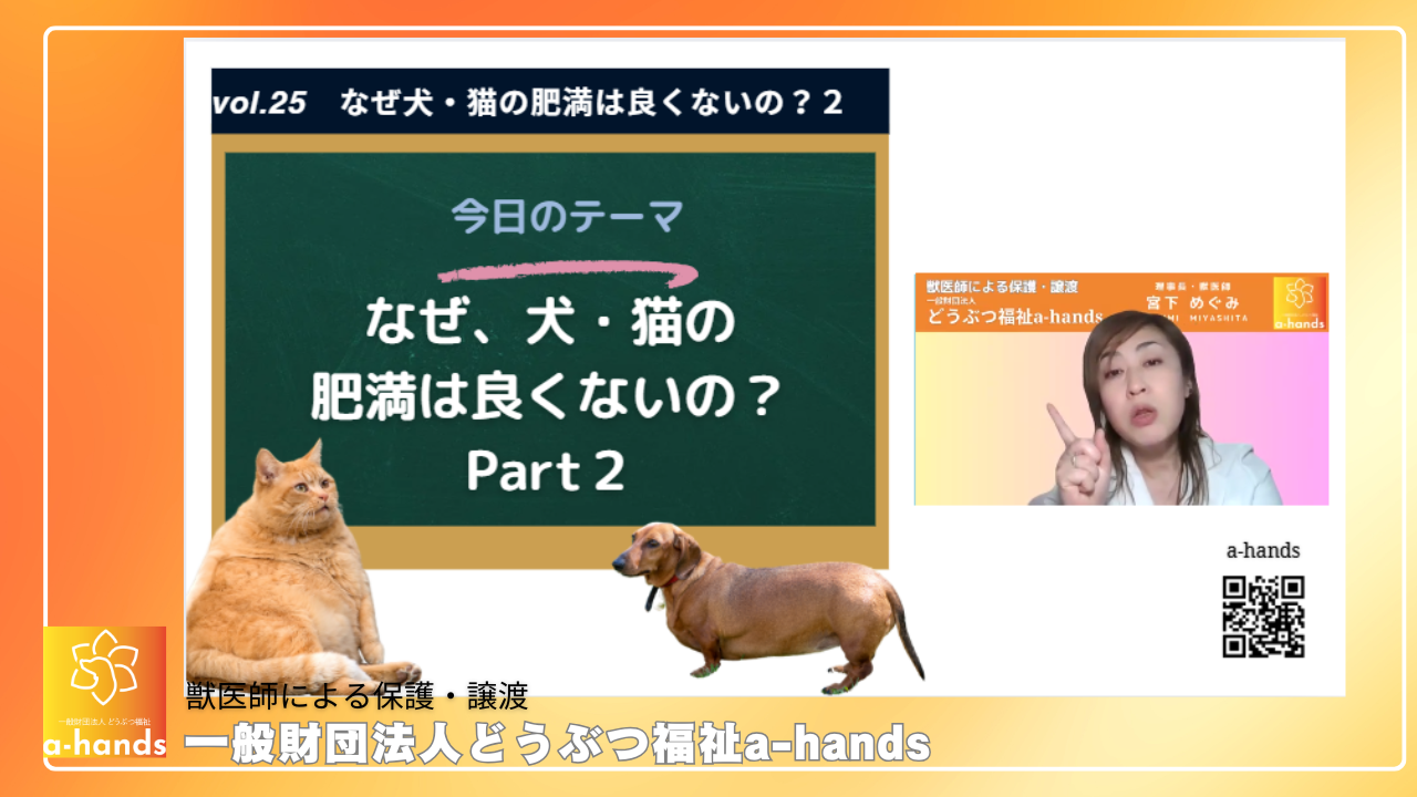 当財団理事長 宮下獣医師が、わんちゃん・ねこちゃんが肥満になる4つの原因についてわかりやすく説明しています!